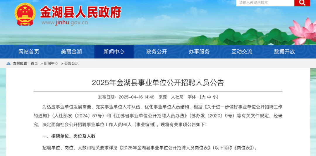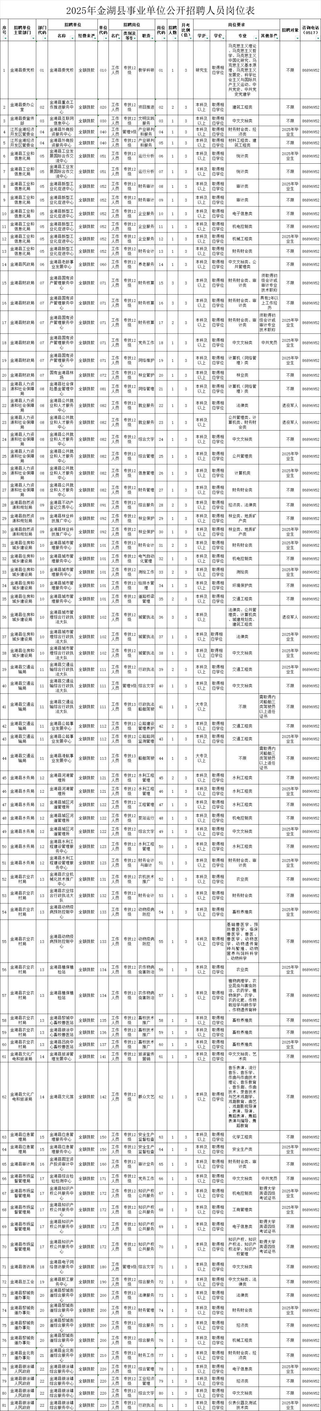 招聘單位、崗位、人數(shù)和相關(guān)要求詳見《2025年金湖縣事業(yè)單位公開招聘人員崗位表》(以下簡稱《崗位表》)。