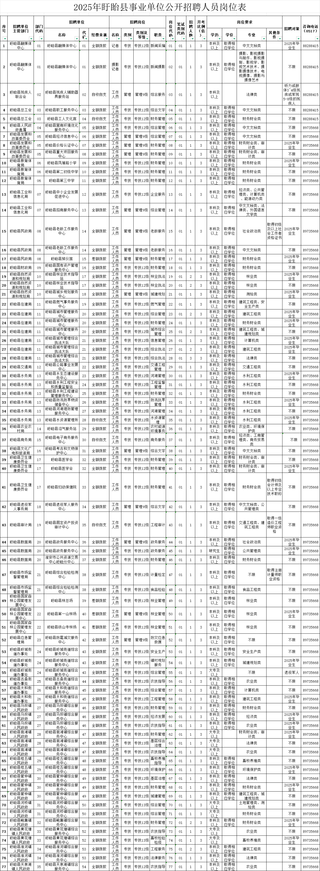 招聘單位、崗位、人數(shù)和相關(guān)要求詳見《2025年盱眙縣事業(yè)單位公開招聘人員崗位表》(以下簡稱《崗位表》)。