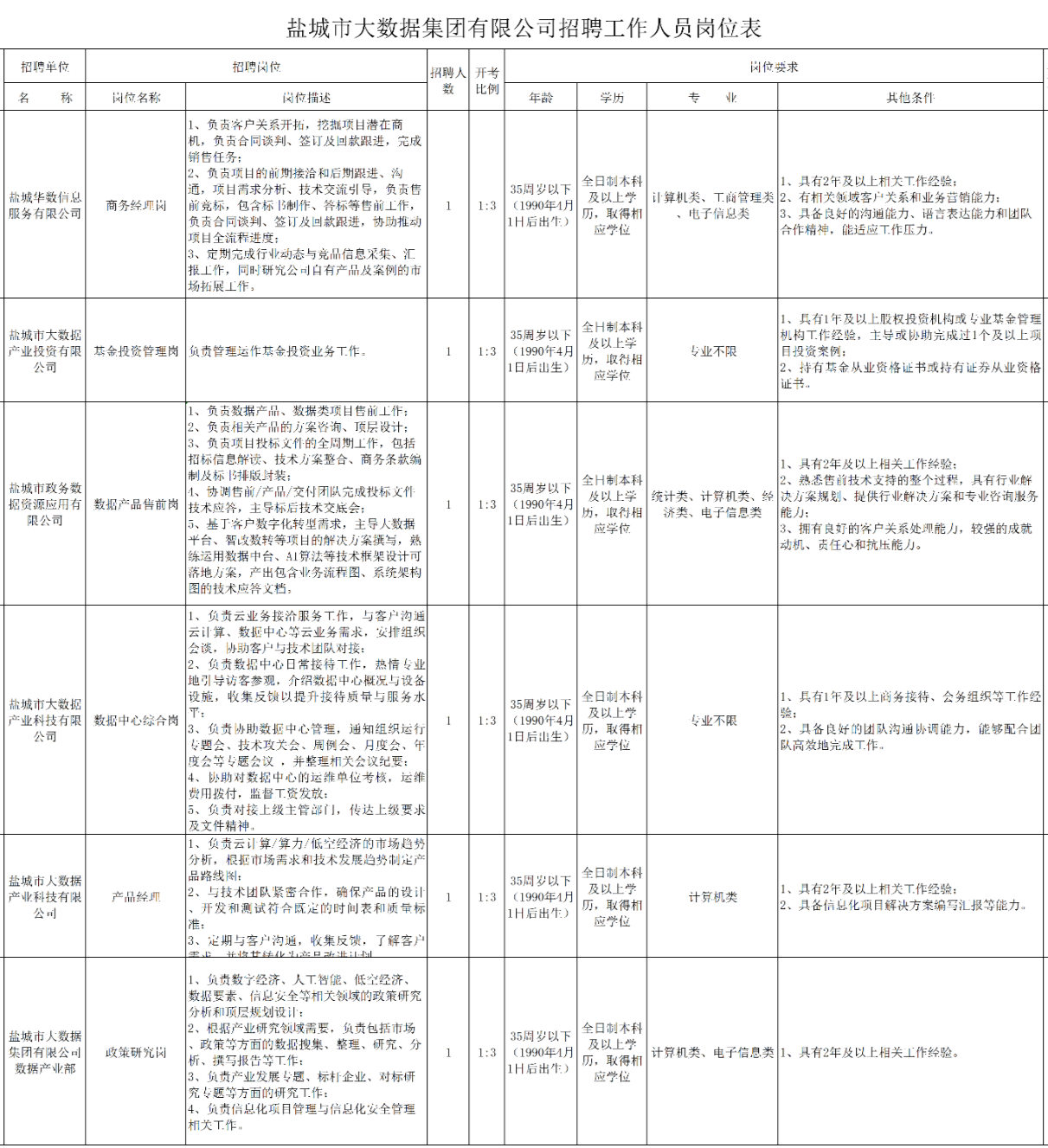 鹽城市大數(shù)據(jù)集團(tuán)有限公司公開招聘公告
