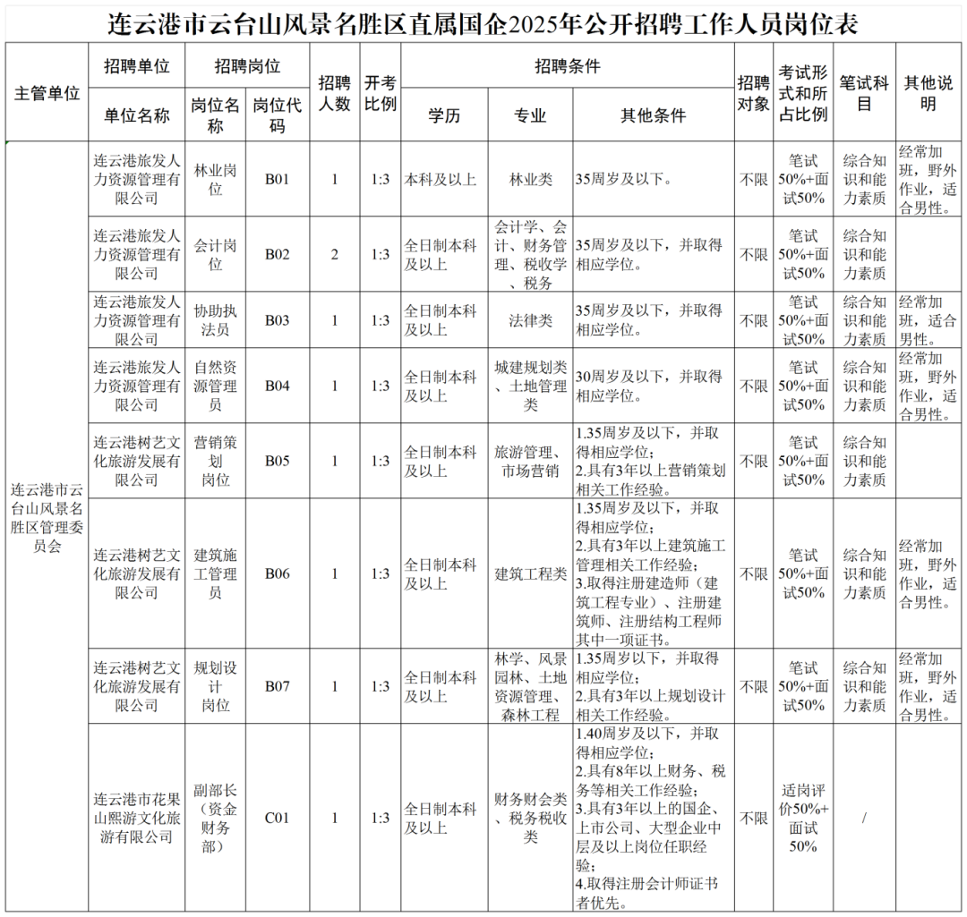 連云港市云臺(tái)山風(fēng)景名勝區(qū)管理委員會(huì)直屬國企2025年公開招聘工作人員公告