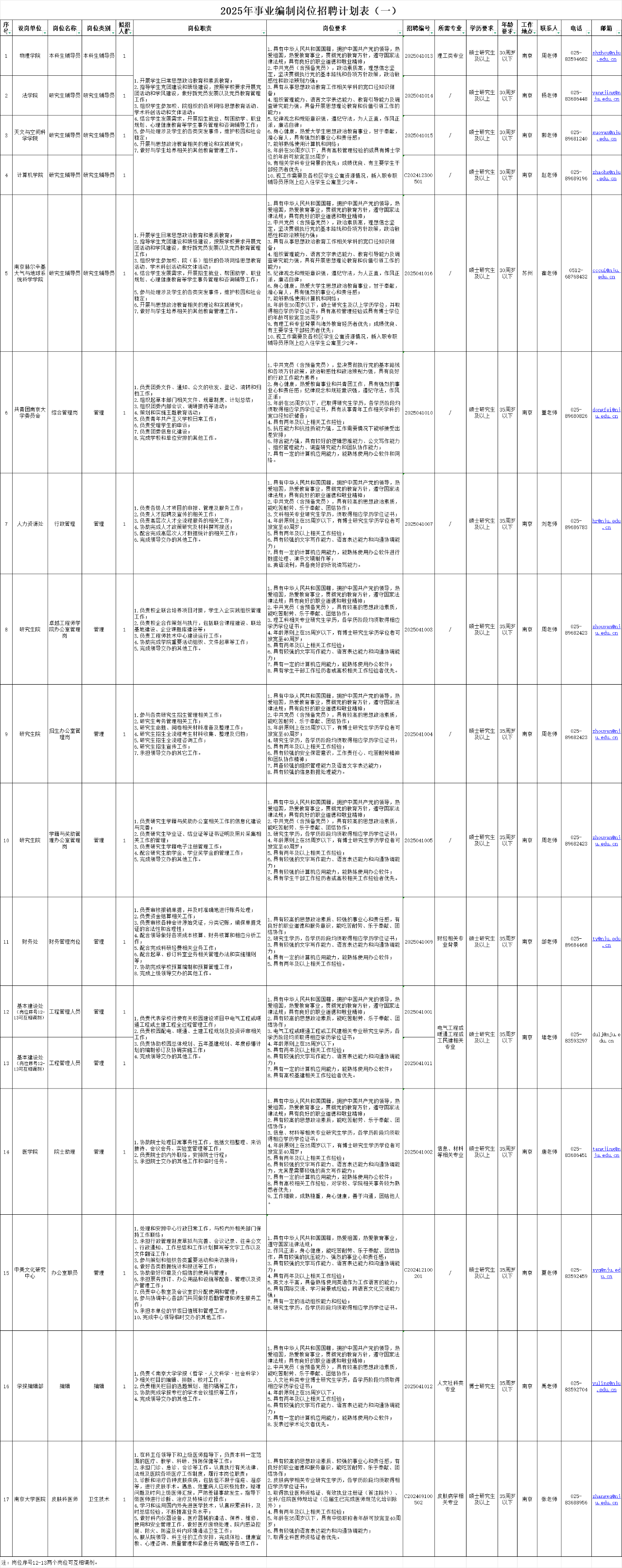 - 17人!事業(yè)編!研究生起報!南京大學2025年事業(yè)編制崗位公開招聘公告(一)