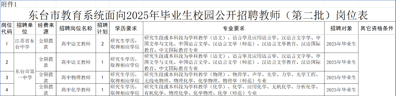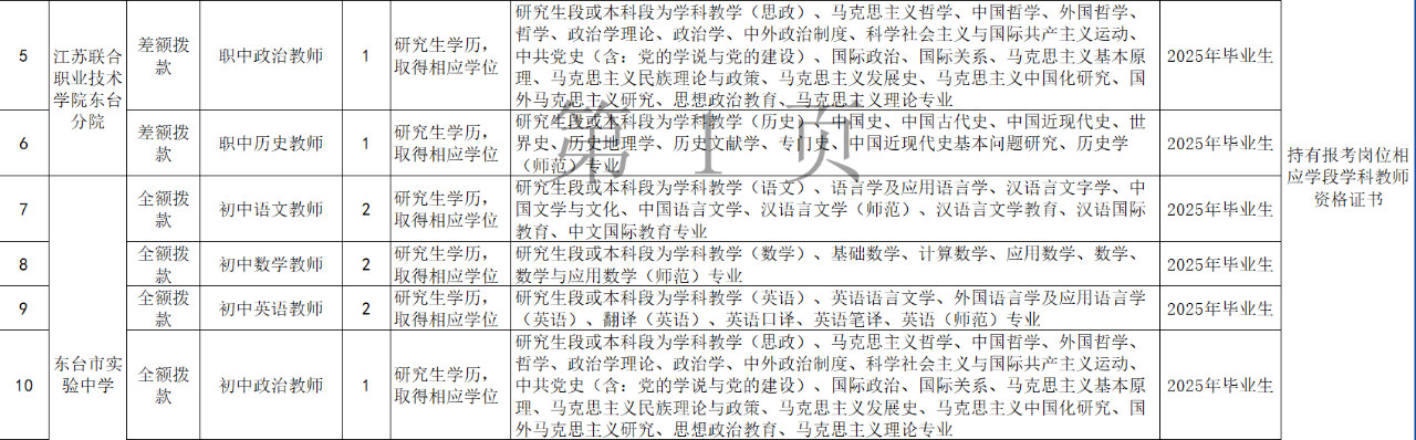 東臺(tái)市教育系統(tǒng)面向2025年畢業(yè)生