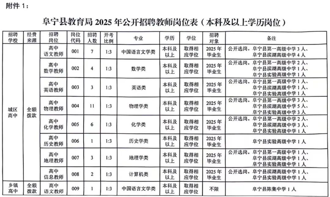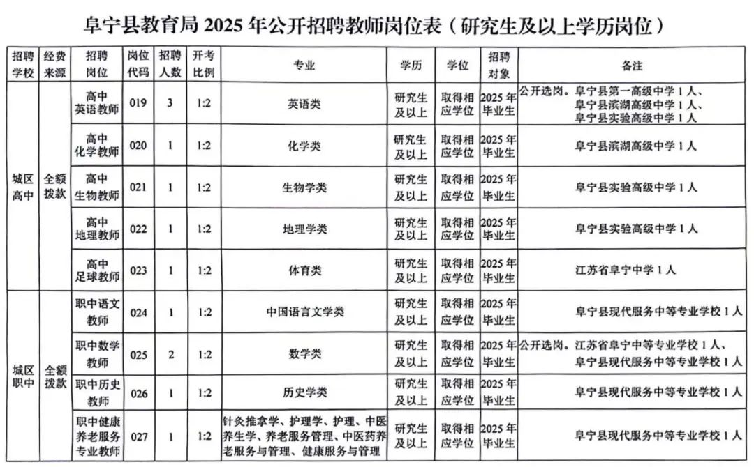 - 76人!教師編!阜寧縣教育局2025年公開招聘教師通告