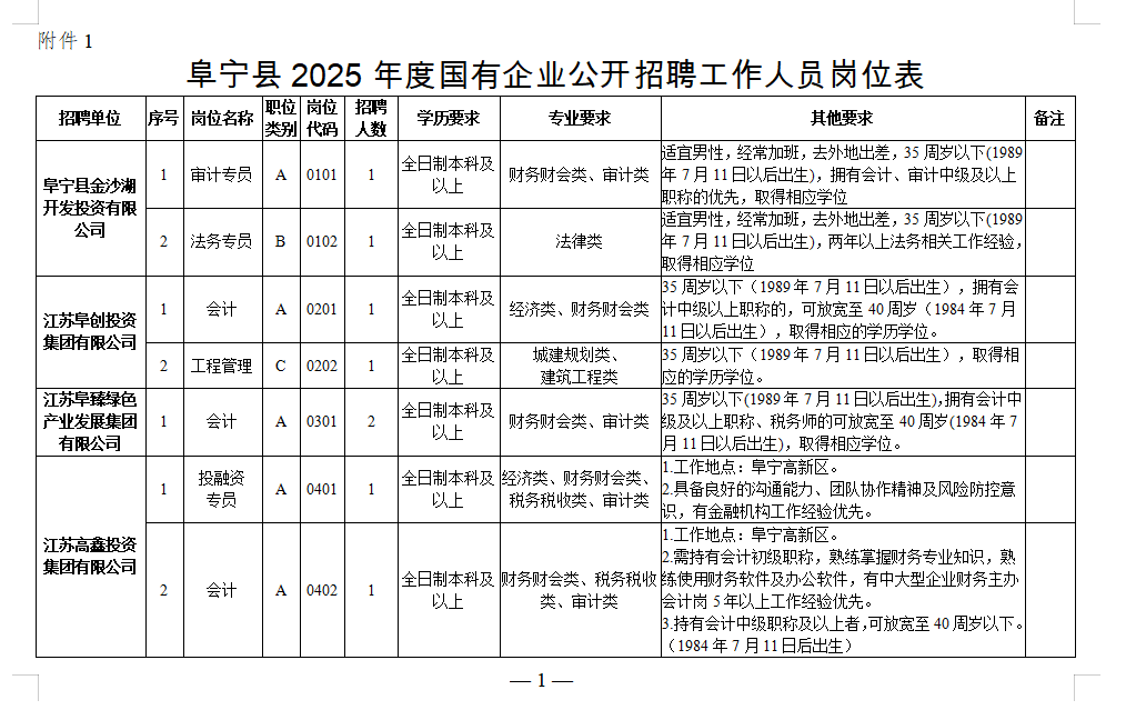 • 阜寧縣2025年度國有企業(yè)公開招聘工作人員通告