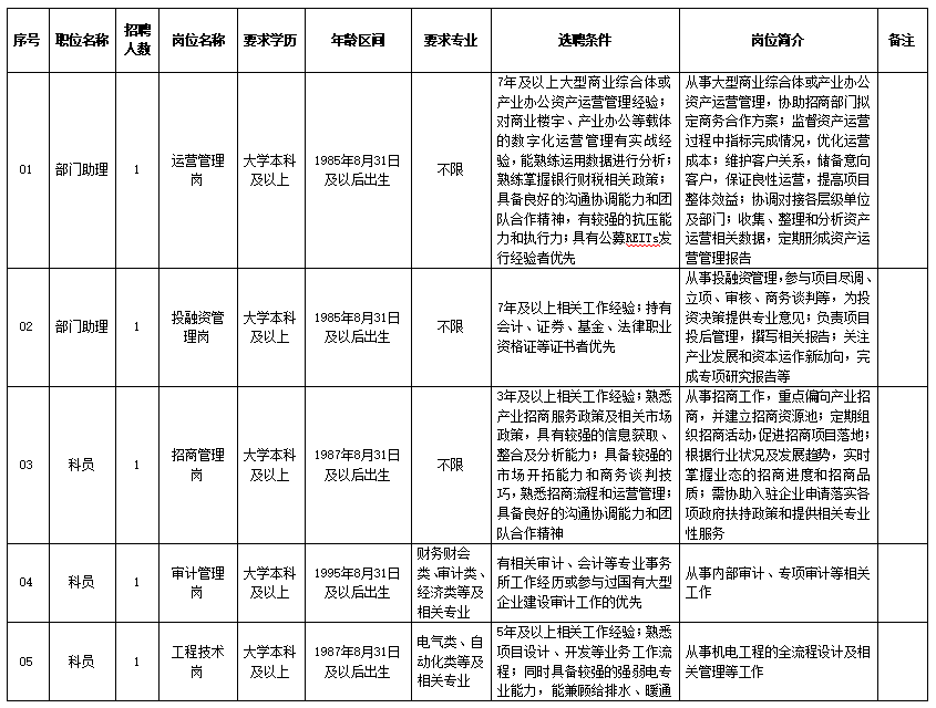 (四)具體崗位需求詳見《蘇州高鐵樞紐投資開發(fā)有限公司公開招聘人員崗位簡介》。