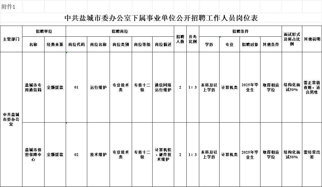 - 4人!事業(yè)編! 鹽城市委辦公室下屬事業(yè)單位2025年公開(kāi)招聘工作人員的公告