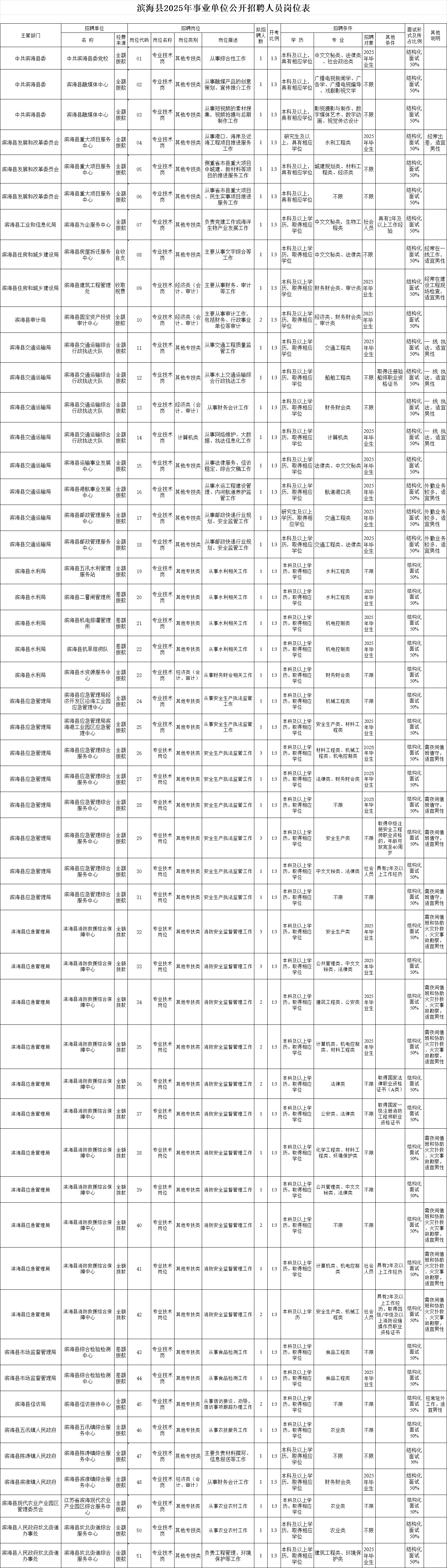 濱海縣2025年事業(yè)單位公開招聘人員公告