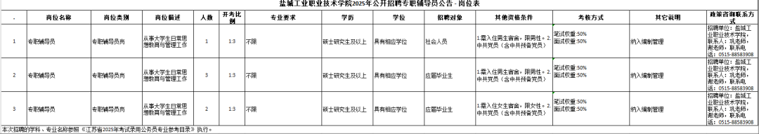 - 6人!事業(yè)編!鹽城工業(yè)職業(yè)技術(shù)學(xué)院2025年公開(kāi)招聘專職輔導(dǎo)員公告