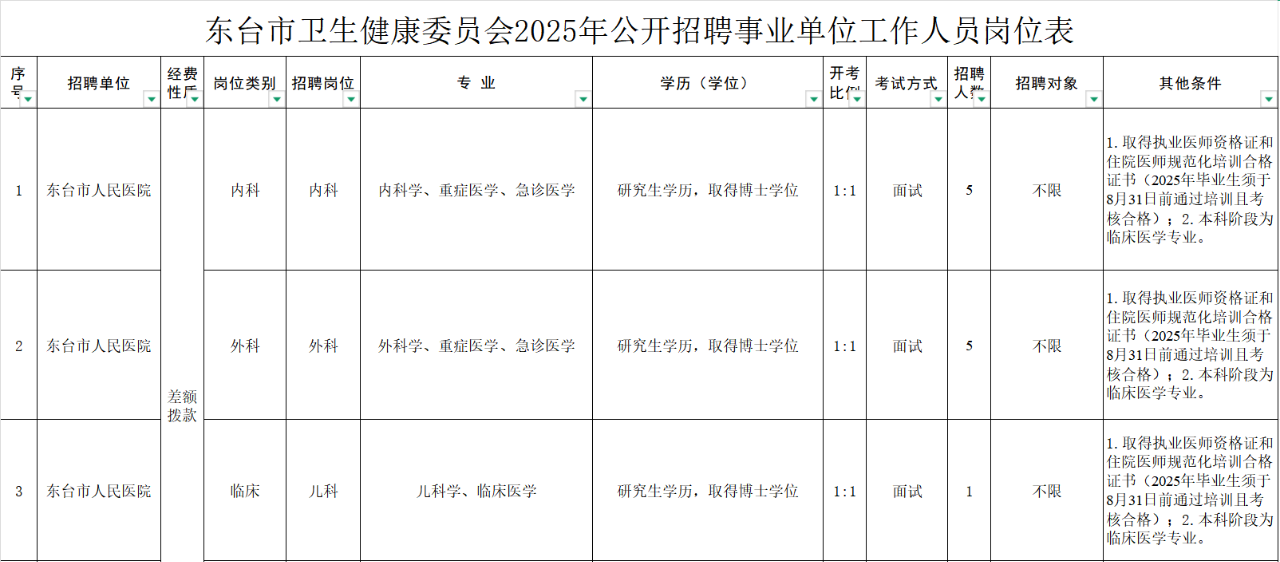 東臺(tái)市衛(wèi)生健康委員會(huì)2025年公開(kāi)招聘公告