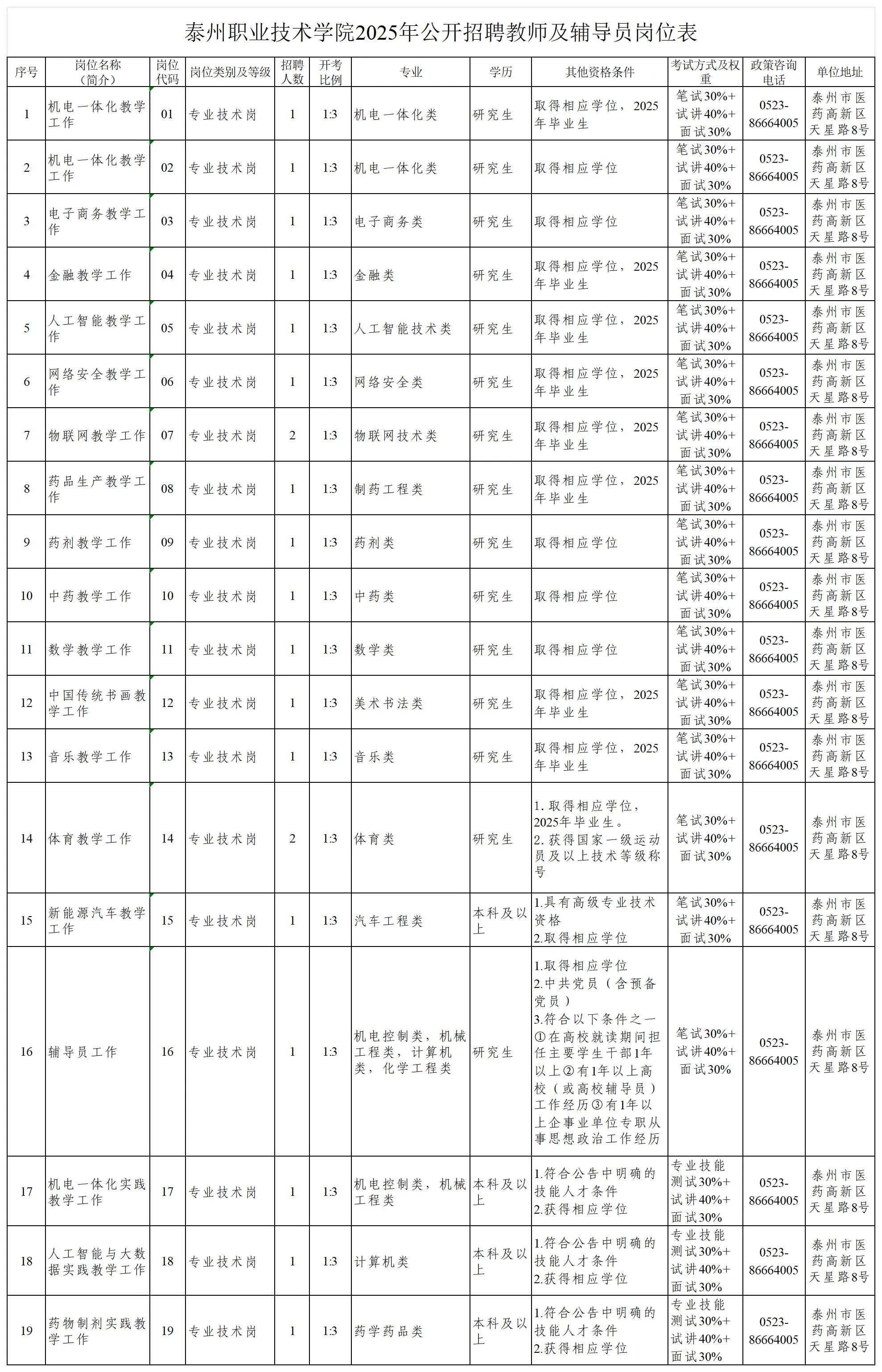 - 21人!事業(yè)編!泰州職業(yè)技術(shù)學(xué)院2025年公開招聘教師及輔導(dǎo)員公告
