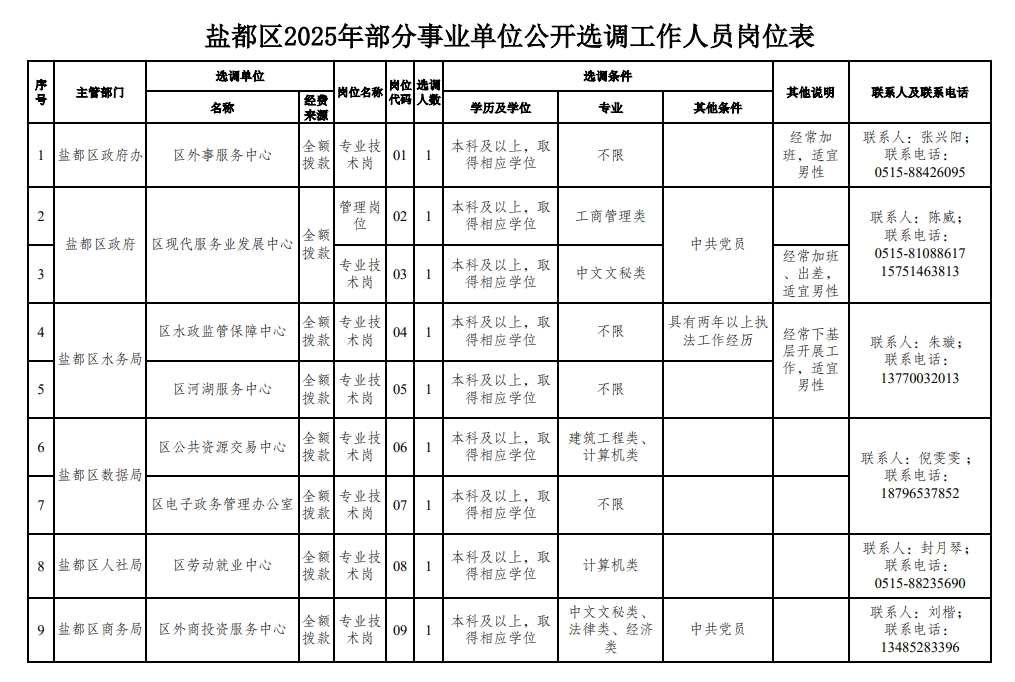 鹽都區(qū)2025年部分事業(yè)單位公開選調(diào)工作人員公告