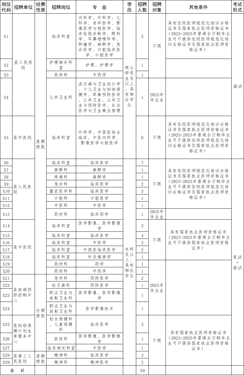 本次招聘崗位均為專業(yè)技術崗位,全部進編,具體崗位計劃表如下: