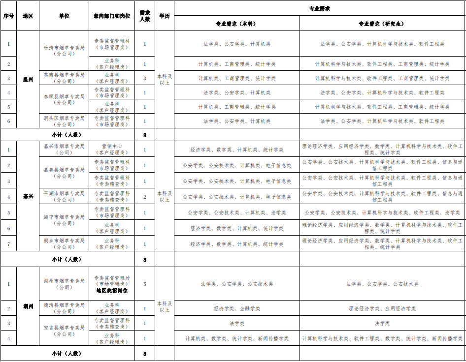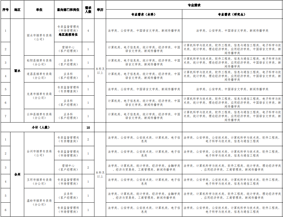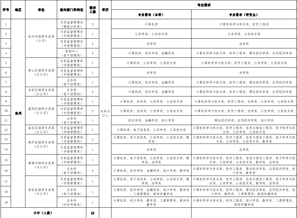 根據(jù)行業(yè)發(fā)展需要,浙江省煙草專賣局(公司)開展2025年業(yè)務(wù)類、生產(chǎn)操作類崗位招聘工作,F(xiàn)將有關(guān)事項公告如下: