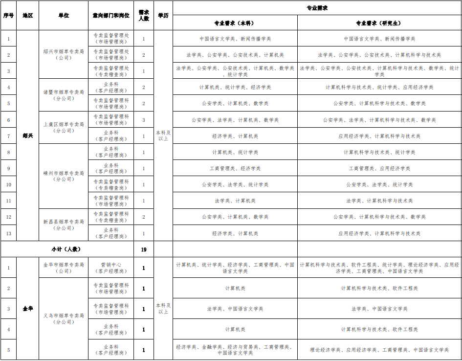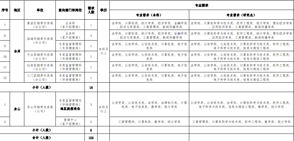 - 157人!浙江省煙草專賣局(公司)業(yè)務(wù)類、生產(chǎn)操作類崗位招聘公告!