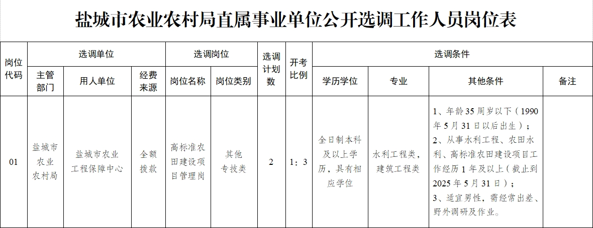 • 2人!鹽城市農(nóng)業(yè)農(nóng)村局直屬事業(yè)單位公開選調(diào)工作人員公告
