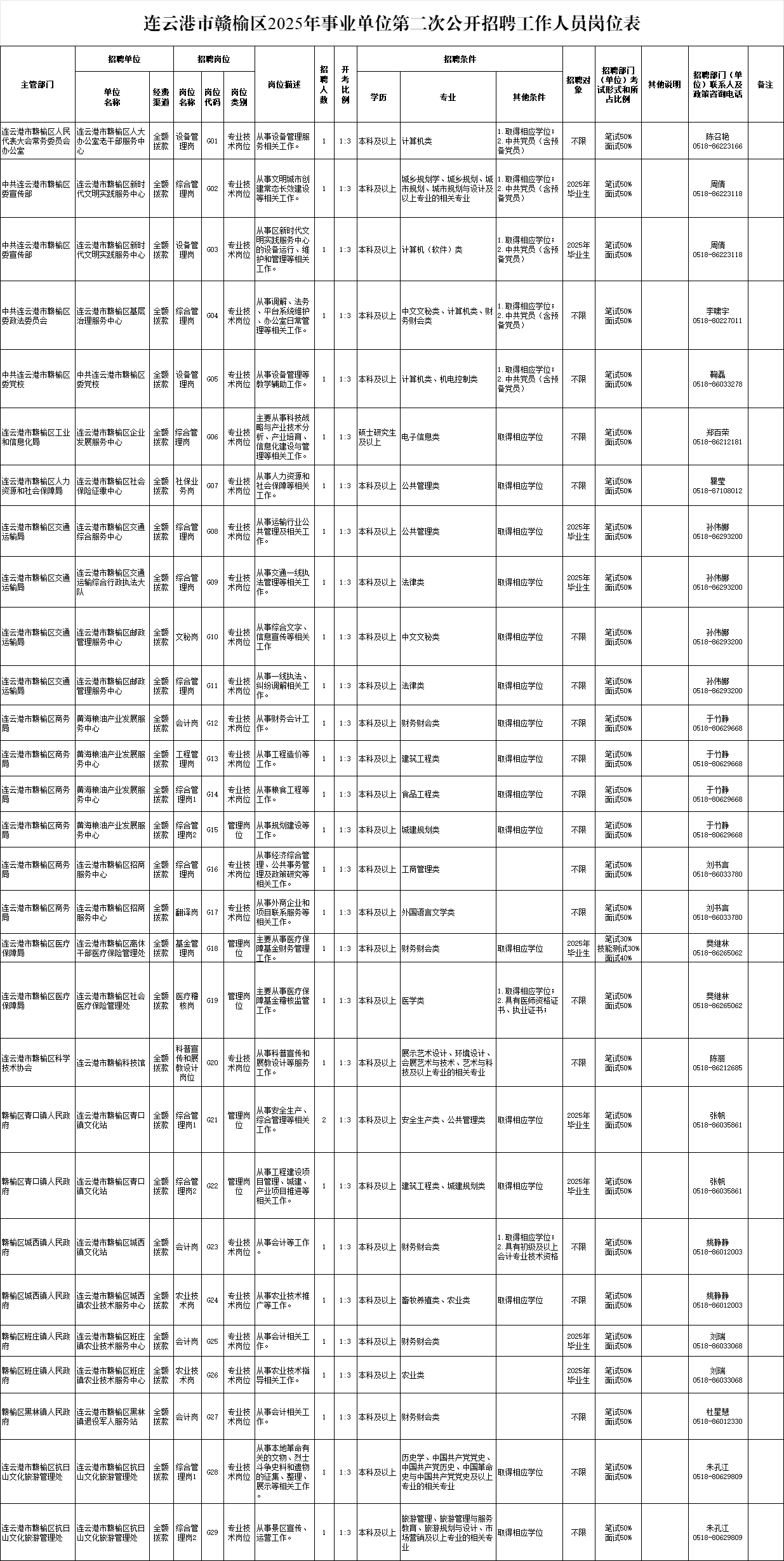 - 30人!事業(yè)編!連云港市贛榆區(qū)2025年事業(yè)單位第二次公開招聘工作人員公告