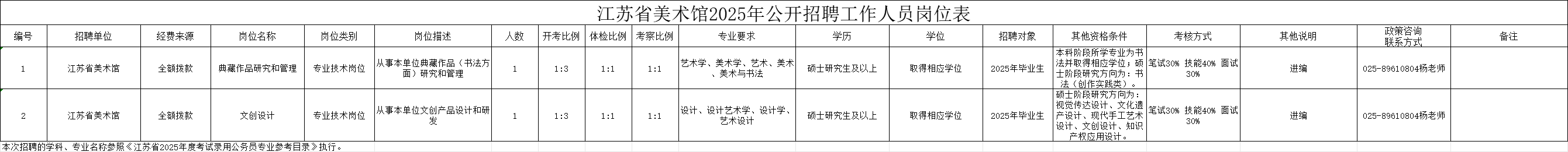 - 2人!事業(yè)編!江蘇省美術(shù)館2025年公開(kāi)招聘工作人員公告