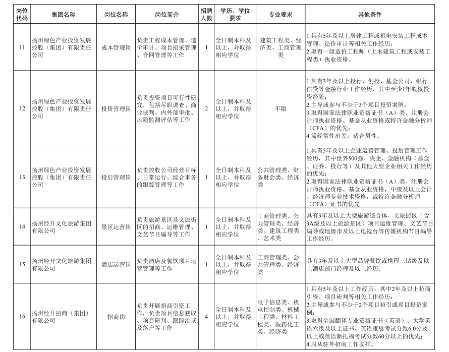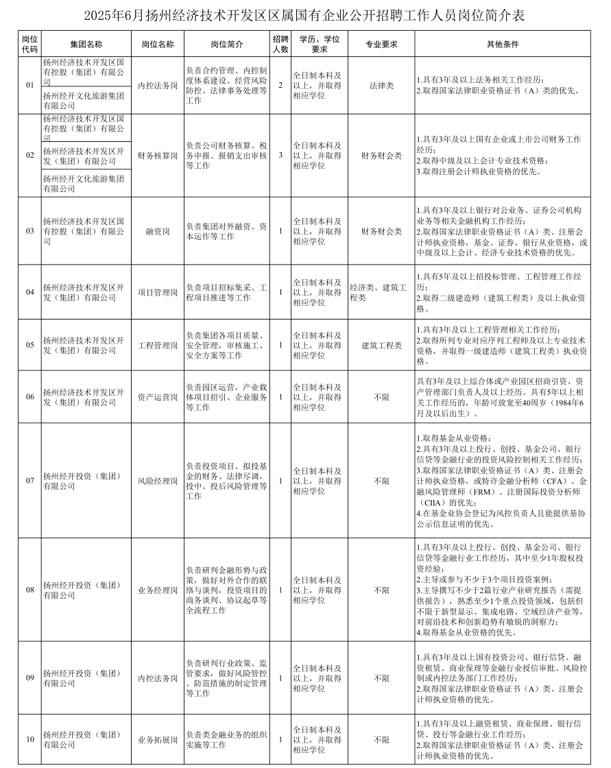 揚(yáng)州經(jīng)濟(jì)技術(shù)開(kāi)發(fā)區(qū)國(guó)有企業(yè)公開(kāi)招聘工作人員公告