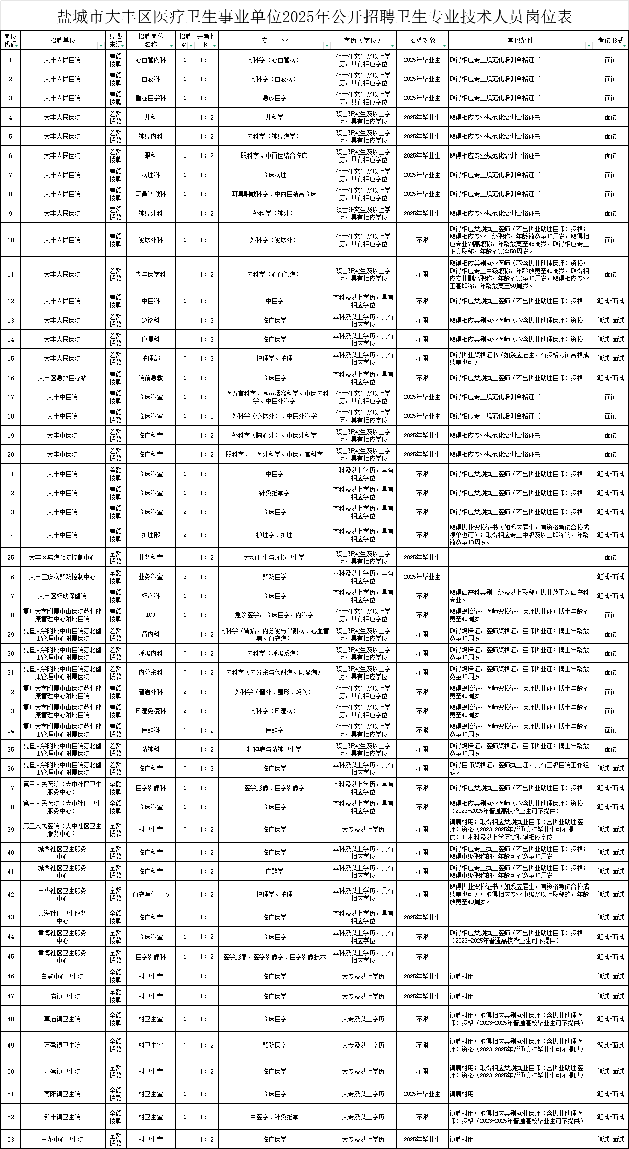 - 71人!衛(wèi)生編!鹽城市大豐區(qū)醫(yī)療衛(wèi)生事業(yè)單位2025年公開招聘衛(wèi)生專業(yè)技術人員公告