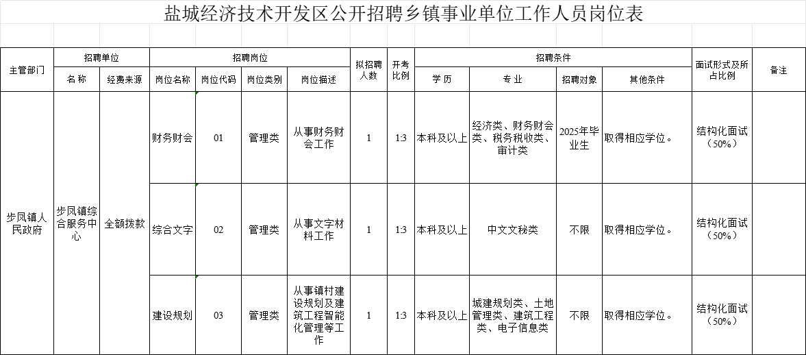 - 3人!事業(yè)編!鹽城經(jīng)濟技術(shù)開發(fā)區(qū)公開招聘鄉(xiāng)鎮(zhèn)事業(yè)單位工作人員公告