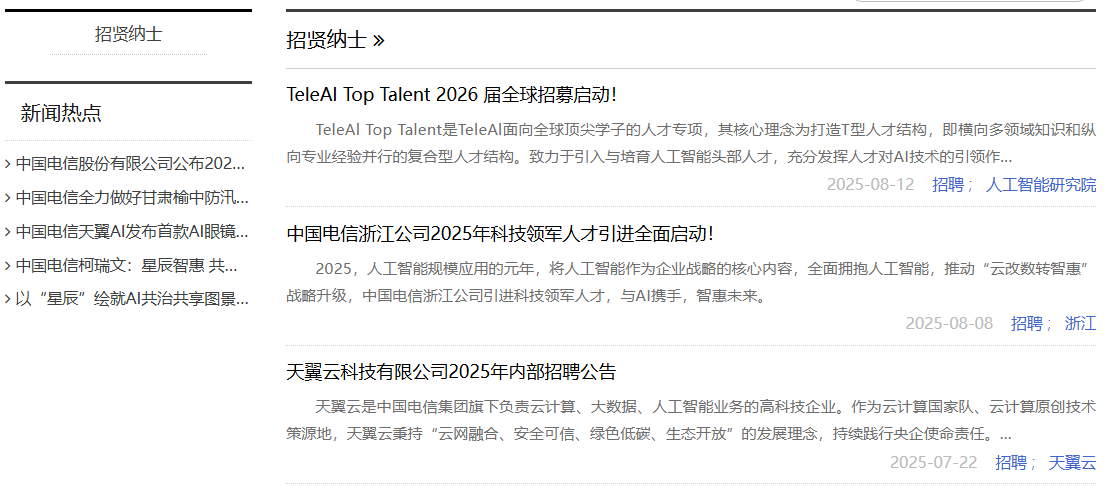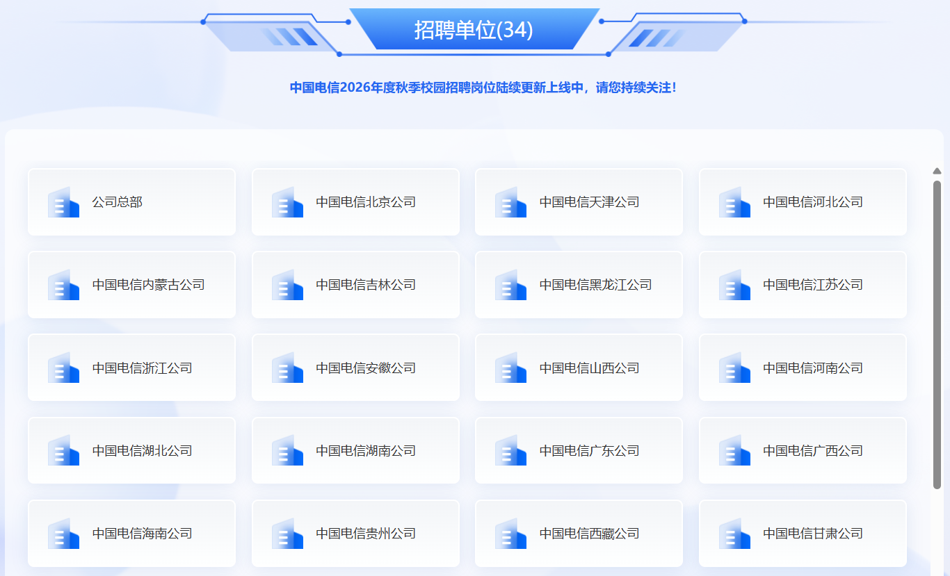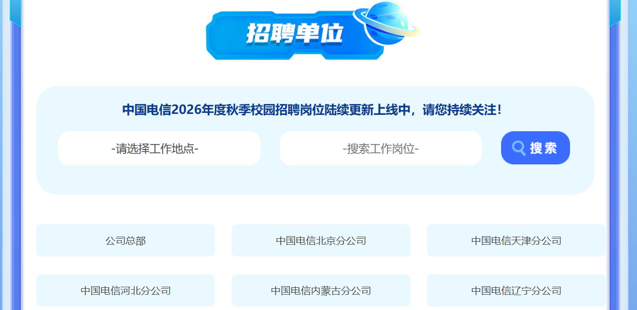 【中國(guó)電信集團(tuán)有限公司網(wǎng)站“招賢納士”專(zhuān)欄】—— 的校招信息