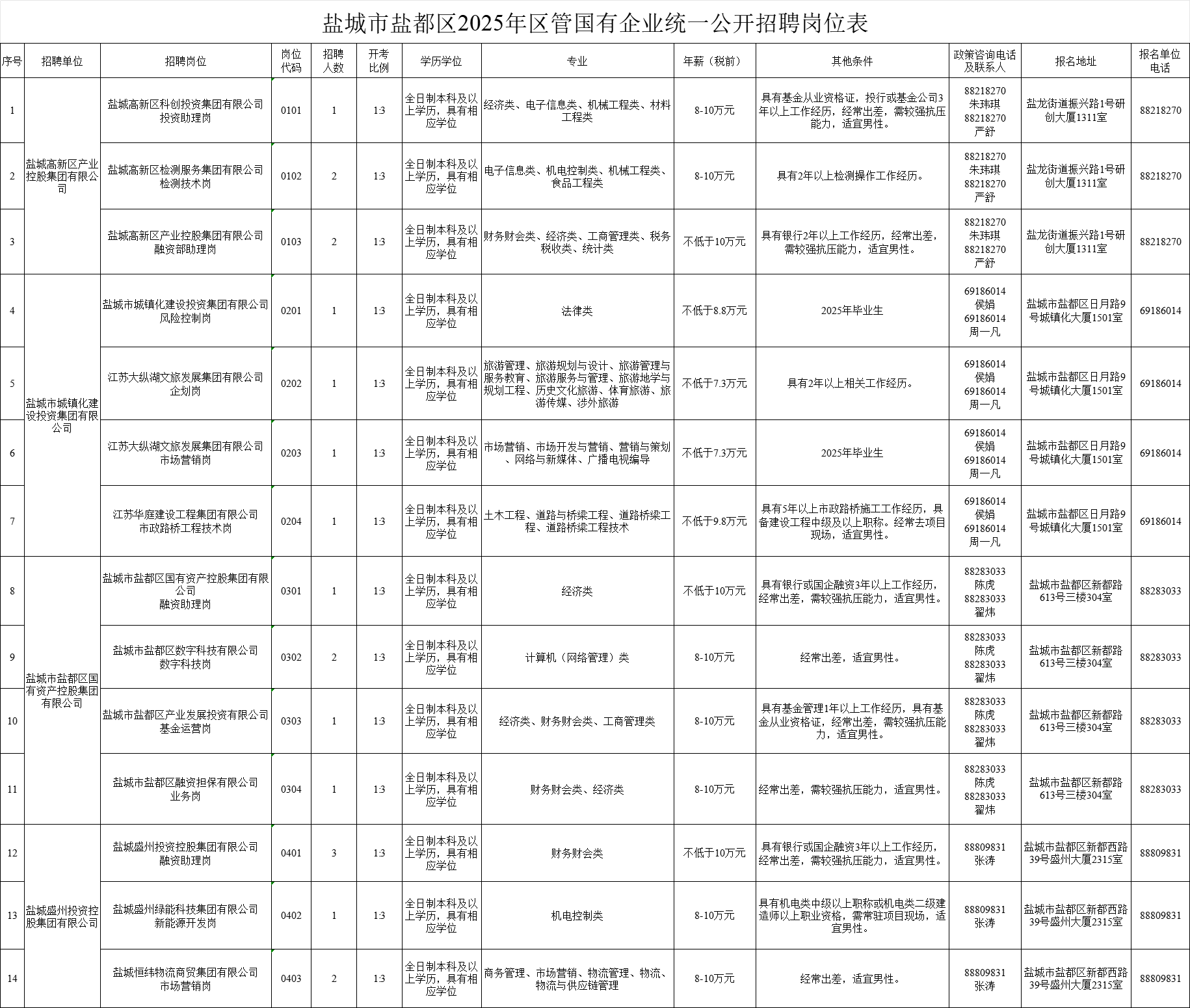 - 20人!國(guó)企!鹽城市鹽都區(qū)2025年區(qū)管國(guó)有企業(yè) 公開招聘人員公告