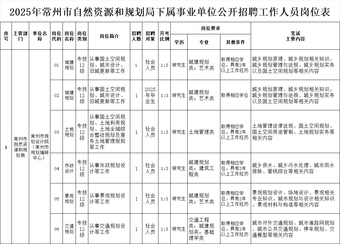 - 6人!事業(yè)編!不限戶籍! 2025年常州市自然資源和規(guī)劃局下屬事業(yè)單位招聘公告